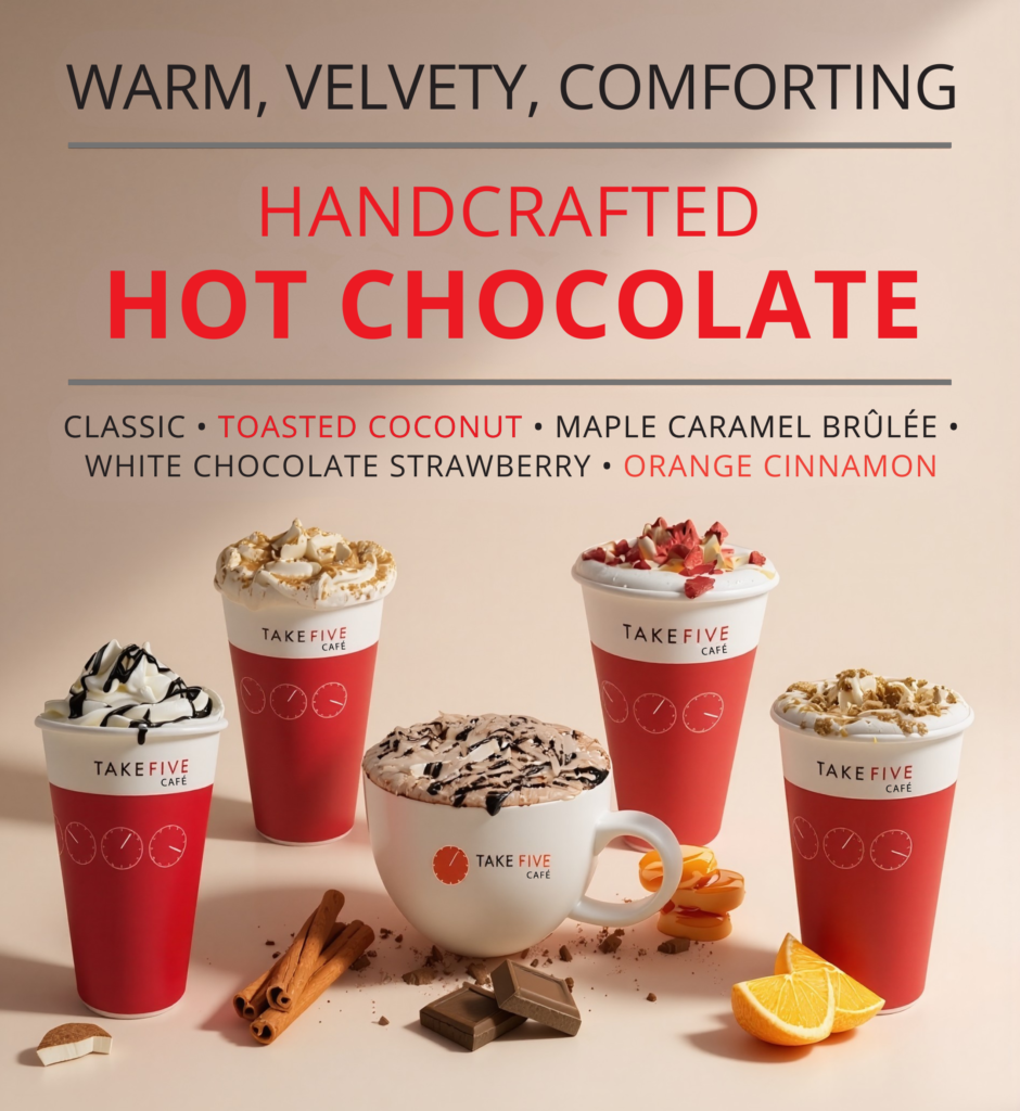 At Take Five Café, we believe in quiet confidence in every cup. Our baristas craft every espresso drink with care, using only premium beans and ingredients. Stop by for a quick coffee before work, a casual meeting with colleagues, or a peaceful moment between busy hours. If you’re looking for the best coffee in New Westminster or a cozy café near Royal Columbian Hospital, your perfect cup awaits at Take Five Café.